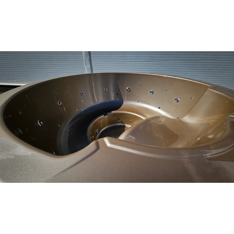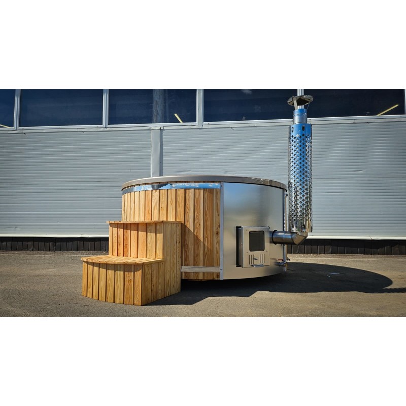 Enjoy a truly effortless hot tub experience with our round fiberglass hot tub, featuring a powerful integrated wood-fired heater. Designed for those who value both comfort and simplicity, this model brings warmth, style, and durability together in one compact package.